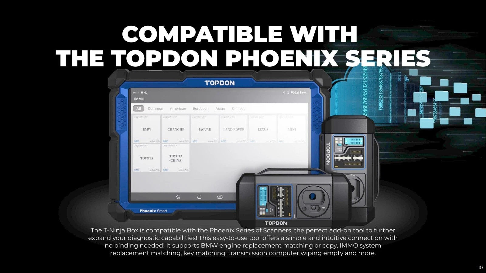✔ The T-Ninja Box is compatible with the Phoenix Series of Scanners, the perfect add-on tool to further expand your diagnostic capabilities!