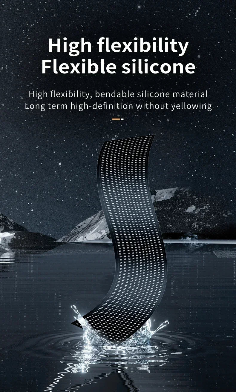 Crafted from durable ABS material, the panel is lightweight yet tough, and its soft foldable design allows flexible installation on windshields or dashboards. Featuring remote-controlled RGB colors, luminous flux of 60–249, and easy plug-in via a cigarette lighter, you can customize patterns, adjust brightness, and switch colors effortlessly. Ideal for trucks, cars, vans, or any vehicle where style meets function.