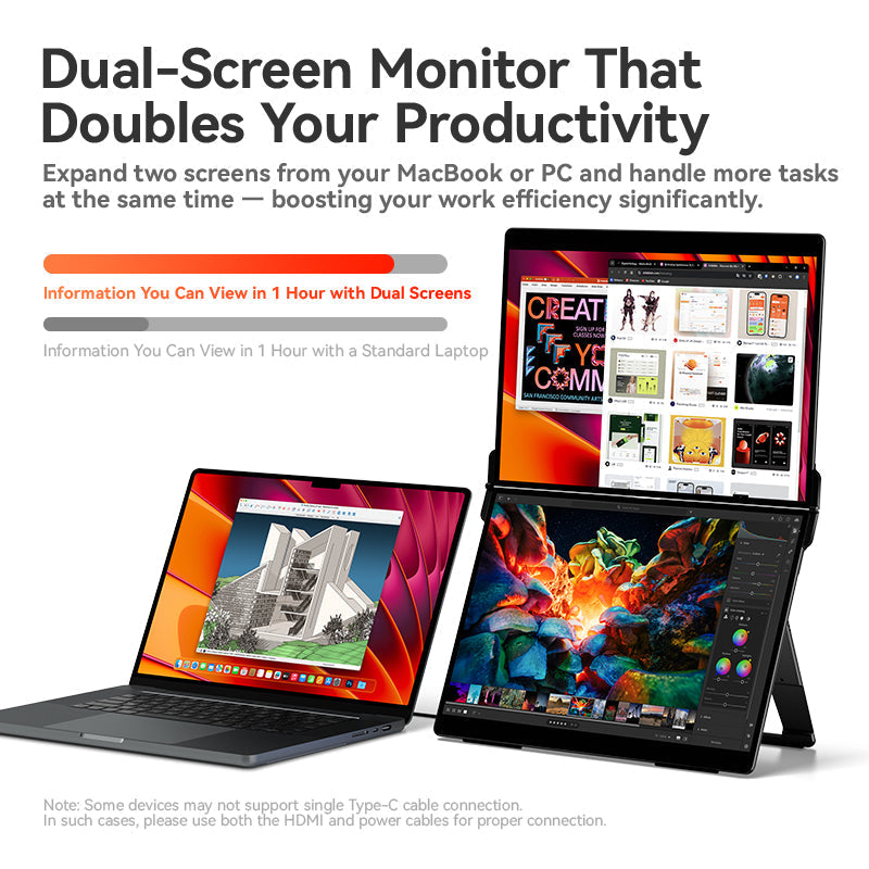 Dual 14.2" Touchscreen Monitor|Double Productivity, One Cable Solution